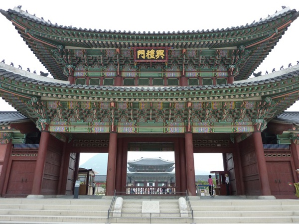 這是第二道門「興禮門」,因為日本強佔時期,把總督府建在第一道光化門和這一道興禮門中間,所以這門都被破壞了,這是重建後的門。