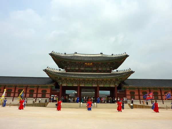 景福宮可以說是皇宮裡最有看頭的,需要門票,一張3000韓圜。景福宮有幾個看點,一是守衛交接,二是建築。