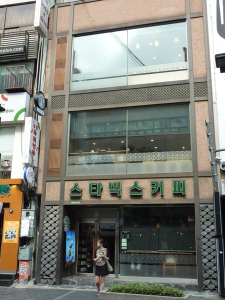 因為這一條街要保持傳統韓國的感覺,所以都不能有英文字,因此這個Starbucks是全世界唯一一個寫韓文的星巴克喔。
