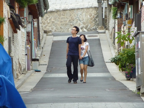 之後我們跟著南桑,坐上計程車來到一個叫作三清洞的地方,這是一個小小的山坡,山坡下有很多pub或是一些很新潮的店,所以還算是個觀光地。