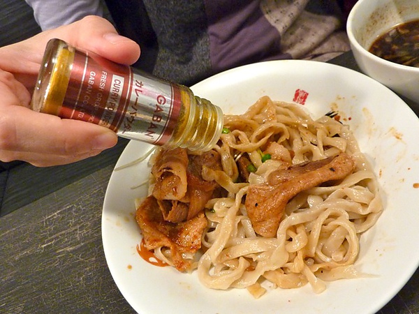 吃到一半,麵條上可以撒上「咖哩粉」。