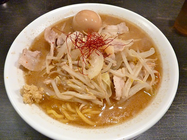 這個組合很妙,印象中很少看到拉麵會加咖哩粉,通常是加黑胡椒粉比較多,但是這樣加了之後吃來有點異國風,很有創意。