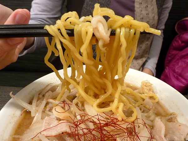 麵條看得出來和つけ麵的粗麵條不一樣,比較像是一般拉麵店吃到的粗細,但煮得軟硬適中,挺有嚼勁,好吃。